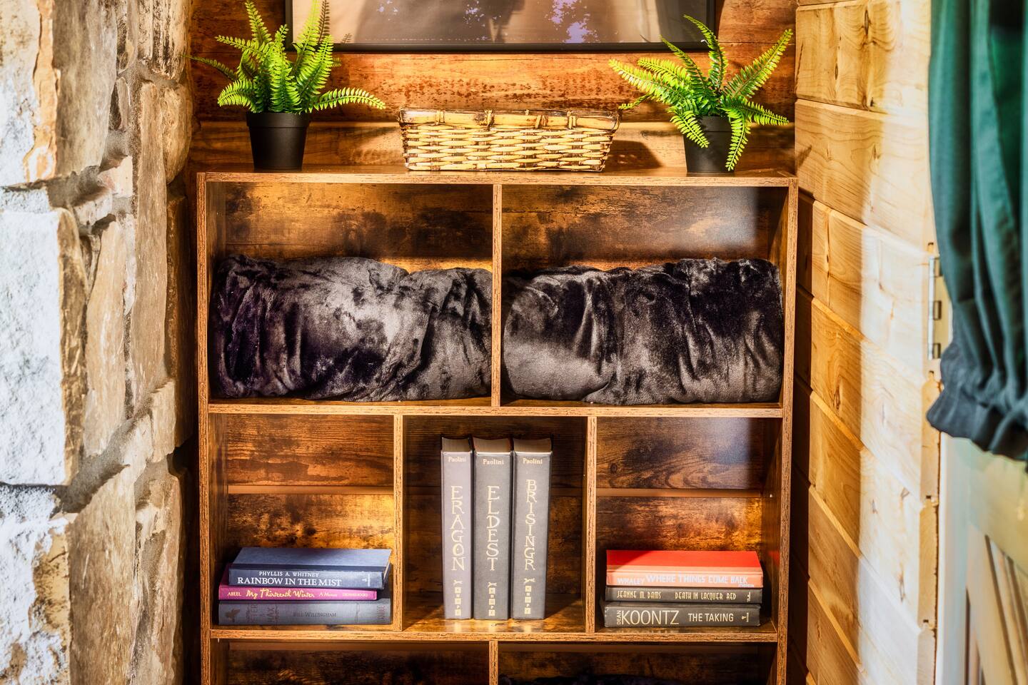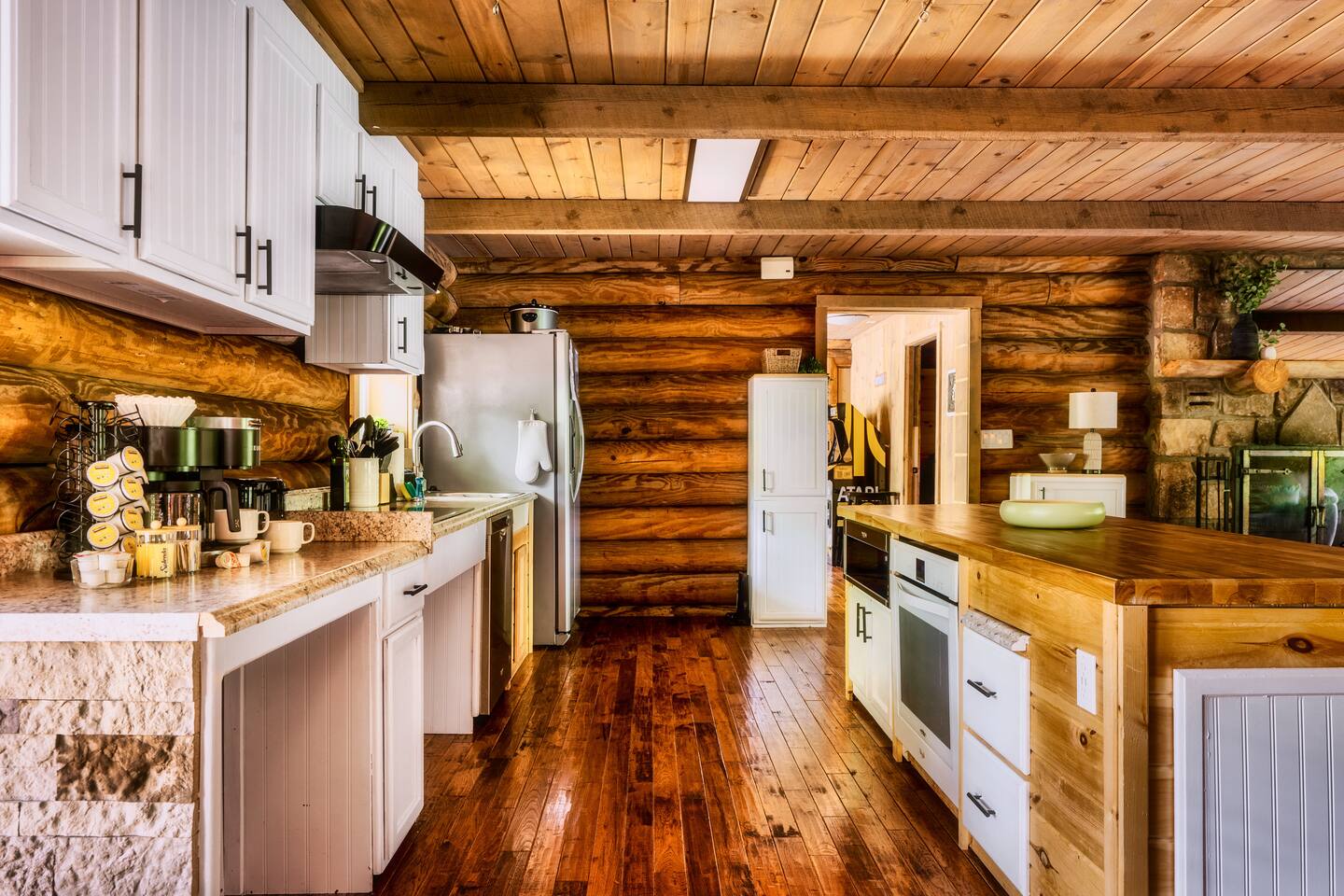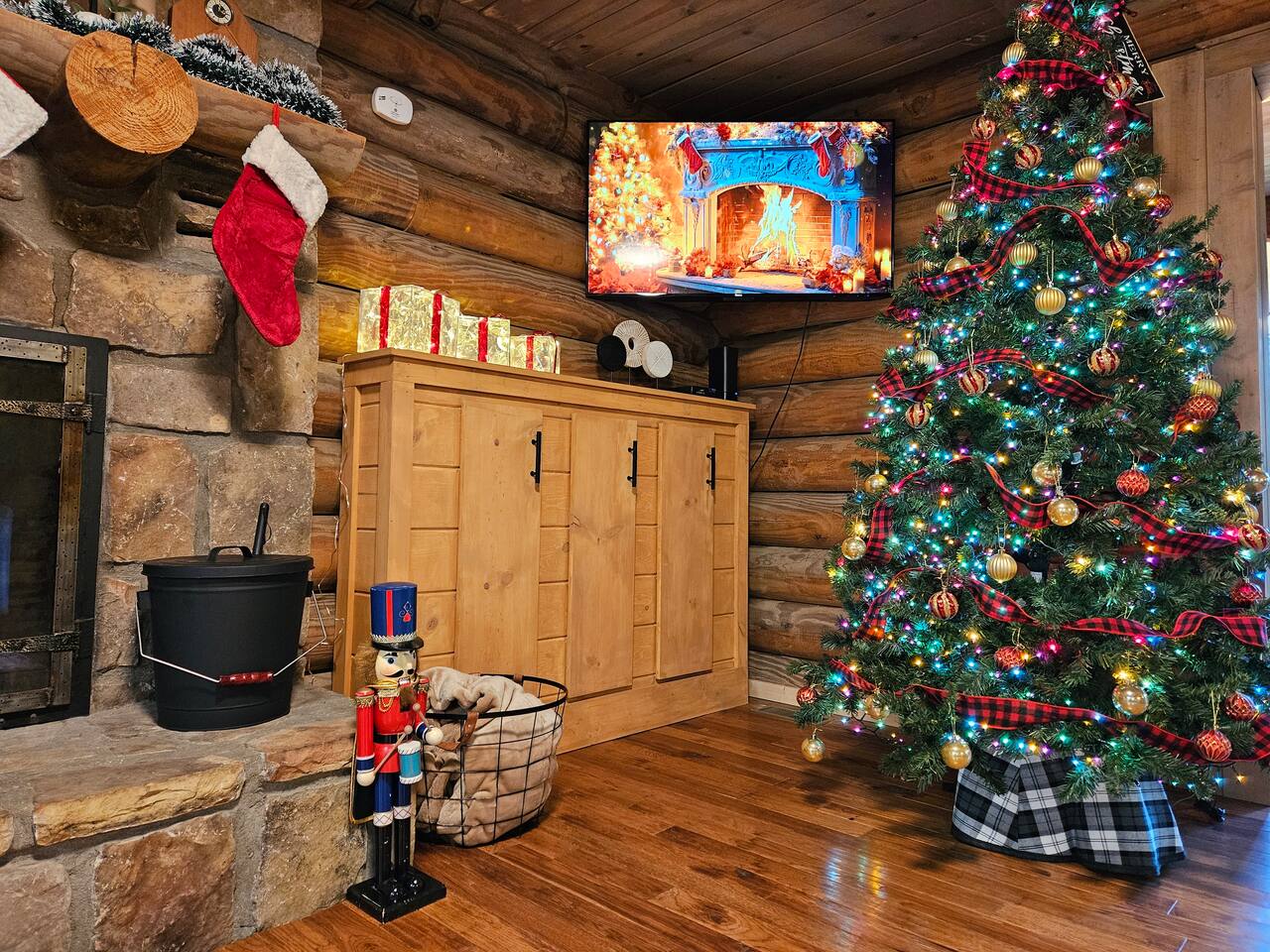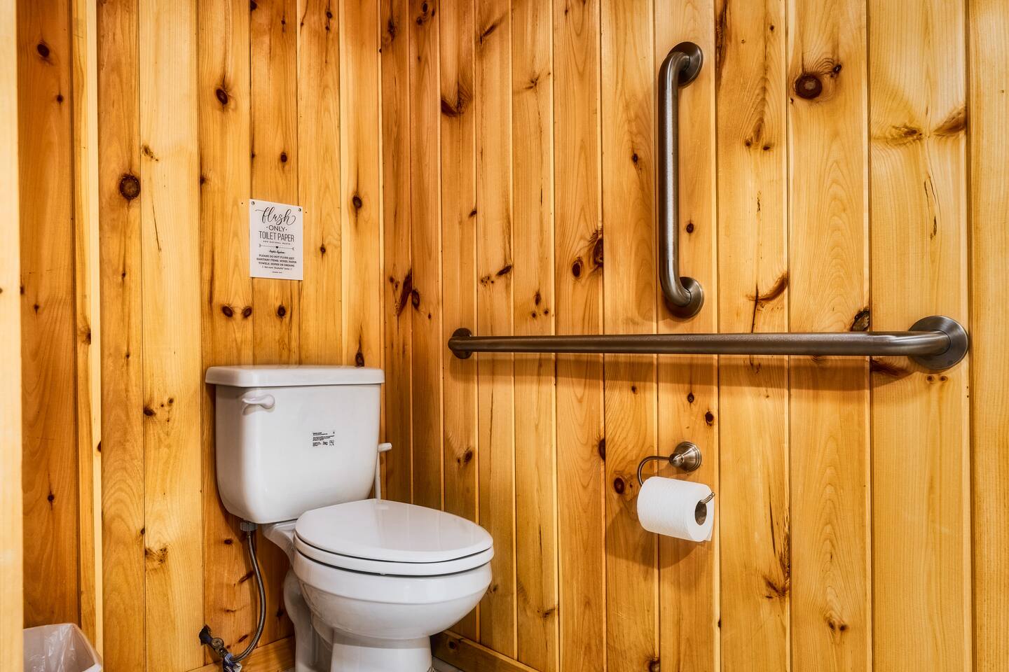 Welcome to Mystic Fox Cabin, your ultimate getaway nestled in the heart of the Smoky Mountains. Designed to offer you a haven of relaxation and accessibility. This spacious retreat is minutes away from Downtown Gatlinburg and provides you with the perfect home base to local attractions such as the Great Smoky Mountain National Park, Dollywood and Pigeon Forge. This 3,168 SF 4-bedroom 3-bathroom real log cabin has (2) levels and offers (2) step-free and wheelchair accessible entrances (32+" and 60+" wide) on the main level. Main Level: The main level is fully wheelchair accessible with an open-concept kitchen, living and dining area. You will also find a game/arcade room, theater room, laundry room, a large, enclosed porch with an exterior deck that houses a private hot tub with seasonal mountain views. The main level will have (2) wheelchair accessible King Suites which feature roll-in showers and shower seats with a 5-foot turning radius in both bathrooms and grab bars for the showers and toilets. The sinks are located outside the bathrooms for easy roll-under access and space. All doorways on the main level are 32" or wider. Lower Level: The lower level features a King Bedroom and a large sleeping area that share a full bathroom with shower. You will also find a second enclosed porch with a comfortable recliner and an outdoor patio with a 2-person egg chair. ★ Living Room ★ • Comfortable Sectional Couch with pillows. • Wood Burning Fireplace. • 50" Roku Smart TV. Please bring your login information. • Coffee tables and reading lamps. ★ Kitchen & Dining ★ • Wheelchair accessible appliances - Stove, Oven, Microwave, Dishwasher, Refrigerator • French Door Refrigerator with Water and Ice Dispenser • Butcher block counter tops with large island • Keurig K-Cup and Carafe Coffee Maker • French Press • Stove top Espresso Maker • Stove top Tea Kettle • Crockpot • Electric Hand Mixer • Flip Belgium Waffle Maker • Toaster • Blender • Cookware, Bakeware, Dinnerware, Glassware, Silverware, & Food Storage Container Sets • Large dining table that seats 8 people. • 3-seat breakfast bar adjacent to the island. • 2-seat dining nook overlooking seasonal mountain views. • Workspace at the Breakfast bar. ★ Sleeping Arrangements – 4 Bedrooms ★ ♛ Bedroom 1 – King Bed (sleeps 2) ♛ Bedroom 2 – King Bed (sleeps 2) ♛ Bedroom 3 – King Bed (sleeps 2) ♛ Bedroom 4 – Queen Bunk Beds (sleeps 4) , (1) Twin Bunk Bed (sleeps 1) with Futon (sleeps 1) underneath ★ All bedrooms offer a similar set of amenities and furnishing: • Smart TV with streaming apps. Please bring your login information. • Pillows, Linens, Sheets, Feather Down Comforter and Extra Blankets. • Night Stands with Reading Lamps. ★ All (3) Bathrooms ★ • Bath with a Shower • Vanity • Toilet • Towels • Wash Cloths • Hair Dryer • Starter Pack Essential Toiletries - Shampoo, Conditioner, Body Wash, Hand Wash ★ Theater Room ★ • 65" Roku Smart TV. Please bring your login information. • 4 theater seats • 2 bean bag chairs ★ Game/Arcade Room ★ • Atari and Galaga Stand-up Arcade Machines (60+ Atari Games - calling all Atari fans!) • Seated 2-plater Mortal Combat Arcade Game • Marvel Pinball Machine • 4-seat game table with an assortment of boards and card games ★ Outdoor Deck ★ • 5-person Private Hot Tub • 2 outdoor chairs ★ Outdoor Area ★ • Park Charcoal Grill & Utensils • Picnic Table • 2 outdoor chairs • Cornhole • 2-person Egg Chair ★ Other Amenities ★ • High-Speed Wi-Fi (300 Mbps!) • Air Conditioning/Heat • Laundry Room with Washer/Dryer • Parking - Paved driveway accommodates up to 4 vehicles