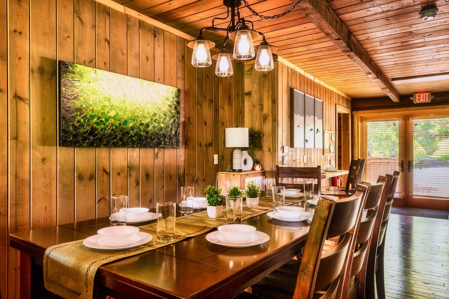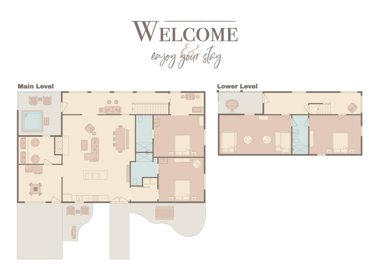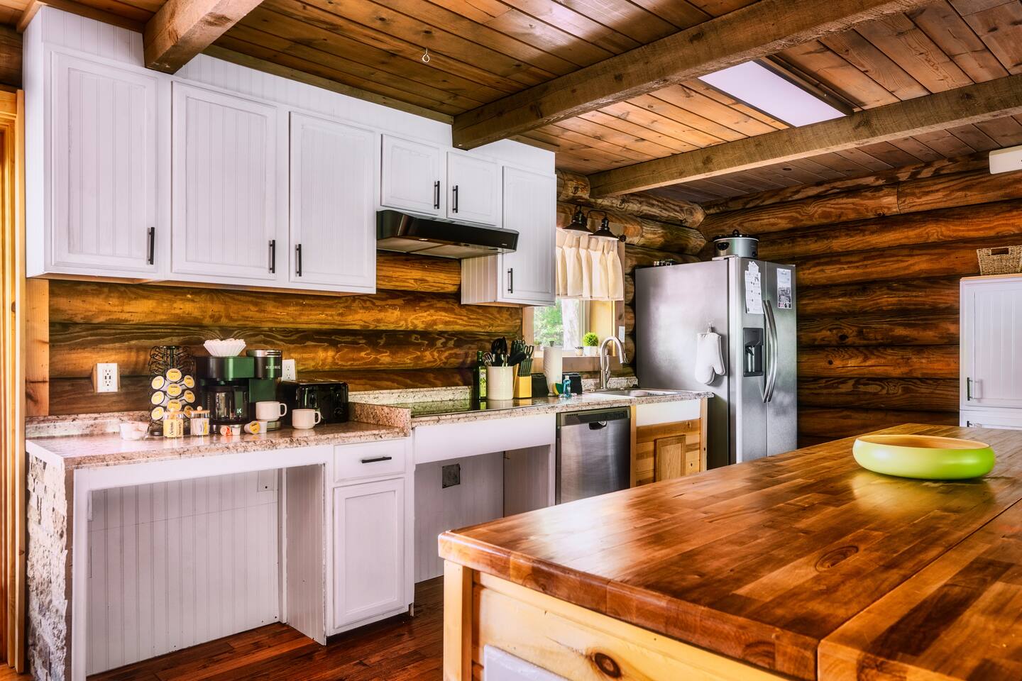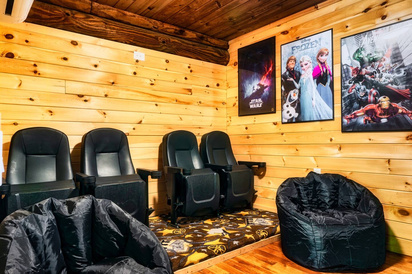 Welcome to Mystic Fox Cabin, your ultimate getaway nestled in the heart of the Smoky Mountains. Designed to offer you a haven of relaxation and accessibility. This spacious retreat is minutes away from Downtown Gatlinburg and provides you with the perfect home base to local attractions such as the Great Smoky Mountain National Park, Dollywood and Pigeon Forge. This 3,168 SF 4-bedroom 3-bathroom real log cabin has (2) levels and offers (2) step-free and wheelchair accessible entrances (32+" and 60+" wide) on the main level. Main Level: The main level is fully wheelchair accessible with an open-concept kitchen, living and dining area. You will also find a game/arcade room, theater room, laundry room, a large, enclosed porch with an exterior deck that houses a private hot tub with seasonal mountain views. The main level will have (2) wheelchair accessible King Suites which feature roll-in showers and shower seats with a 5-foot turning radius in both bathrooms and grab bars for the showers and toilets. The sinks are located outside the bathrooms for easy roll-under access and space. All doorways on the main level are 32" or wider. Lower Level: The lower level features a King Bedroom and a large sleeping area that share a full bathroom with shower. You will also find a second enclosed porch with a comfortable recliner and an outdoor patio with a 2-person egg chair. ★ Living Room ★ • Comfortable Sectional Couch with pillows. • Wood Burning Fireplace. • 50" Roku Smart TV. Please bring your login information. • Coffee tables and reading lamps. ★ Kitchen & Dining ★ • Wheelchair accessible appliances - Stove, Oven, Microwave, Dishwasher, Refrigerator • French Door Refrigerator with Water and Ice Dispenser • Butcher block counter tops with large island • Keurig K-Cup and Carafe Coffee Maker • French Press • Stove top Espresso Maker • Stove top Tea Kettle • Crockpot • Electric Hand Mixer • Flip Belgium Waffle Maker • Toaster • Blender • Cookware, Bakeware, Dinnerware, Glassware, Silverware, & Food Storage Container Sets • Large dining table that seats 8 people. • 3-seat breakfast bar adjacent to the island. • 2-seat dining nook overlooking seasonal mountain views. • Workspace at the Breakfast bar. ★ Sleeping Arrangements – 4 Bedrooms ★ ♛ Bedroom 1 – King Bed (sleeps 2) ♛ Bedroom 2 – King Bed (sleeps 2) ♛ Bedroom 3 – King Bed (sleeps 2) ♛ Bedroom 4 – Queen Bunk Beds (sleeps 4) , (1) Twin Bunk Bed (sleeps 1) with Futon (sleeps 1) underneath ★ All bedrooms offer a similar set of amenities and furnishing: • Smart TV with streaming apps. Please bring your login information. • Pillows, Linens, Sheets, Feather Down Comforter and Extra Blankets. • Night Stands with Reading Lamps. ★ All (3) Bathrooms ★ • Bath with a Shower • Vanity • Toilet • Towels • Wash Cloths • Hair Dryer • Starter Pack Essential Toiletries - Shampoo, Conditioner, Body Wash, Hand Wash ★ Theater Room ★ • 65" Roku Smart TV. Please bring your login information. • 4 theater seats • 2 bean bag chairs ★ Game/Arcade Room ★ • Atari and Galaga Stand-up Arcade Machines (60+ Atari Games - calling all Atari fans!) • Seated 2-plater Mortal Combat Arcade Game • Marvel Pinball Machine • 4-seat game table with an assortment of boards and card games ★ Outdoor Deck ★ • 5-person Private Hot Tub • 2 outdoor chairs ★ Outdoor Area ★ • Park Charcoal Grill & Utensils • Picnic Table • 2 outdoor chairs • Cornhole • 2-person Egg Chair ★ Other Amenities ★ • High-Speed Wi-Fi (300 Mbps!) • Air Conditioning/Heat • Laundry Room with Washer/Dryer • Parking - Paved driveway accommodates up to 4 vehicles