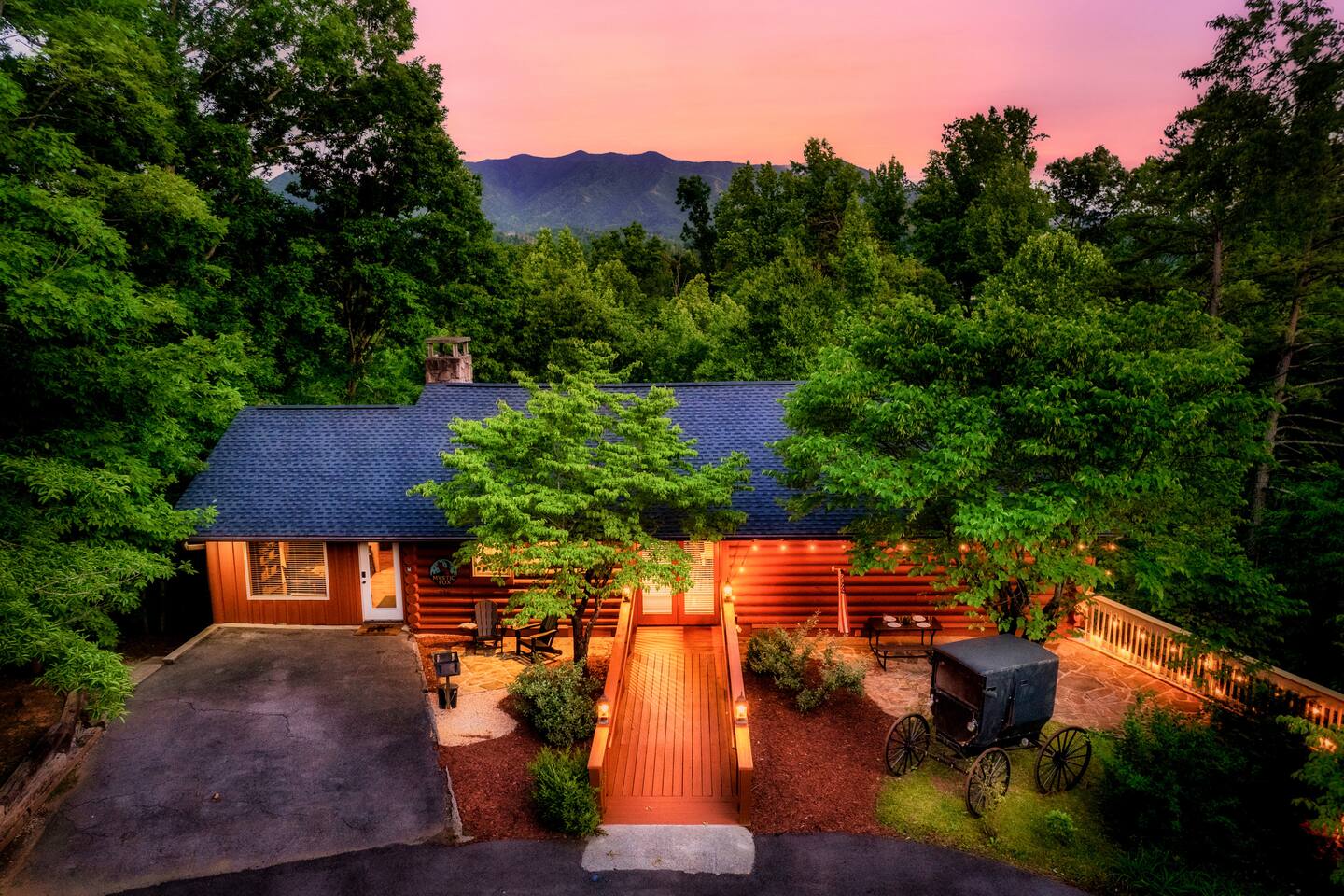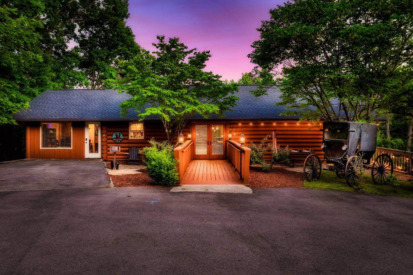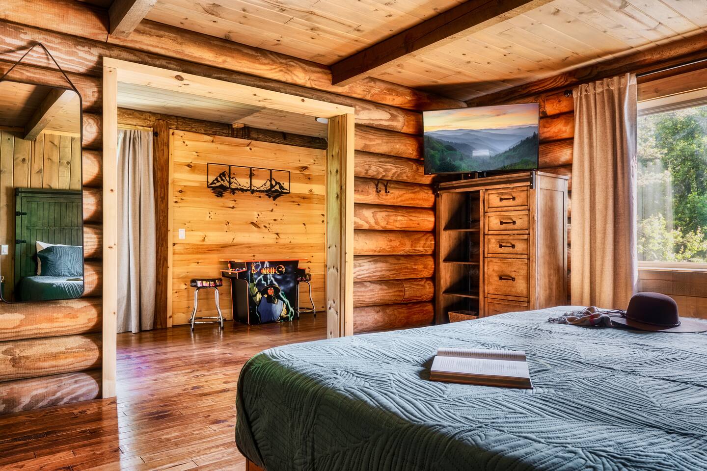 📌2.5 mi. to DT Gatlinburg 📌5 mi. to GSMNP HQ 📌9 mi. to Dollywood ♿️Wheelchair friendly entrance, main level bedrooms, bathrooms & appliances 🏡Secluded location 🪵True Log Cabin 🌟3168 SF ➡ Step-free entry & main level ➡ Sleeps 12 humans ➡ Driveway fits 4 cars ➡ Fast WiFi (500+ Mbps!) ➡ 2 King Suites, 3 King Beds, 3 full bathrooms ➡ Wood Burning Fireplace ➡ 5-person Hot Tub ➡ Theater Room ➡ Park Charcoal Grill ➡ Fully stocked kitchen ➡ 6 Smart TVs ➡ Arcades ➡ Board/card games ➡ Washer & Dryer
