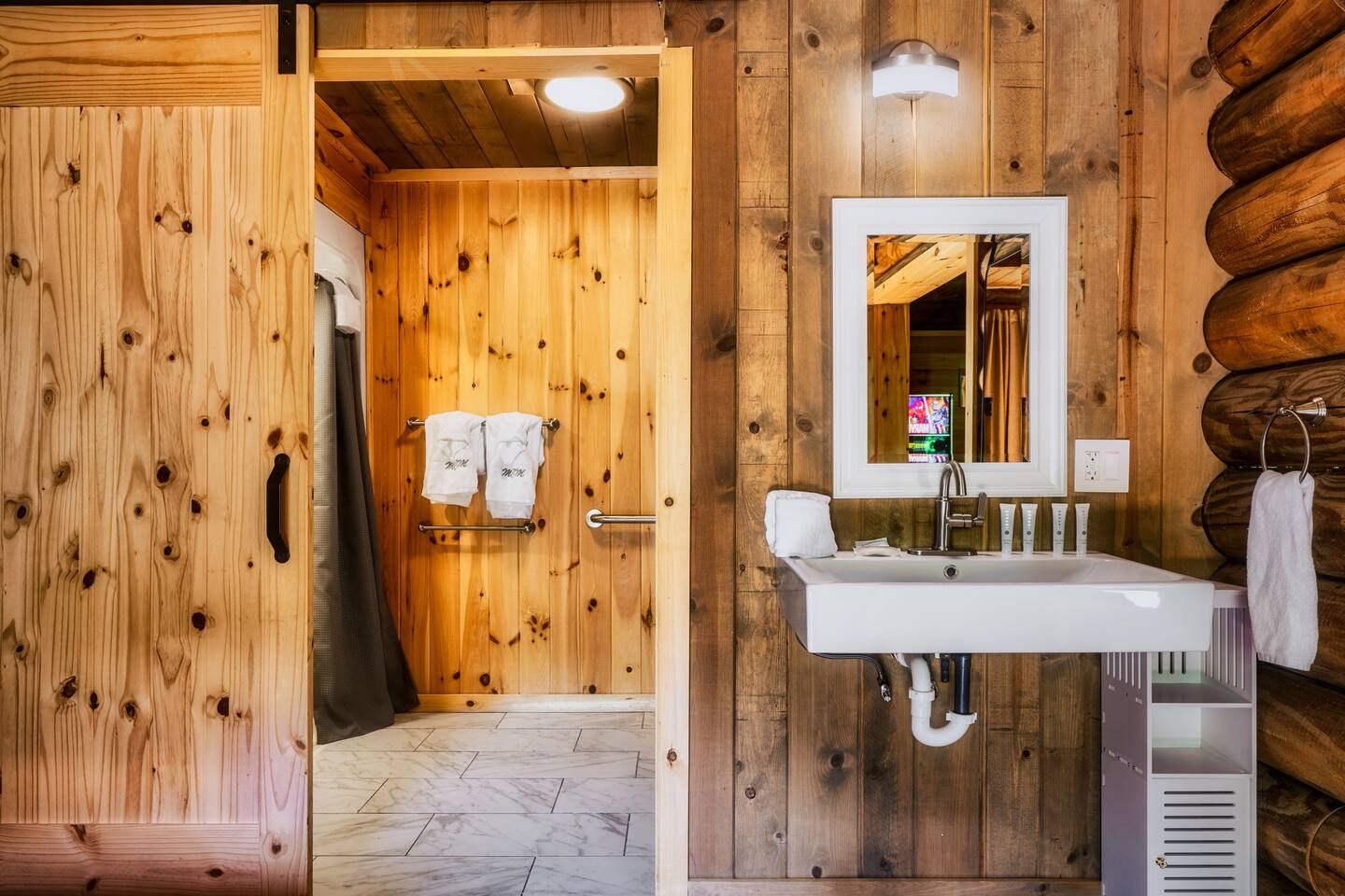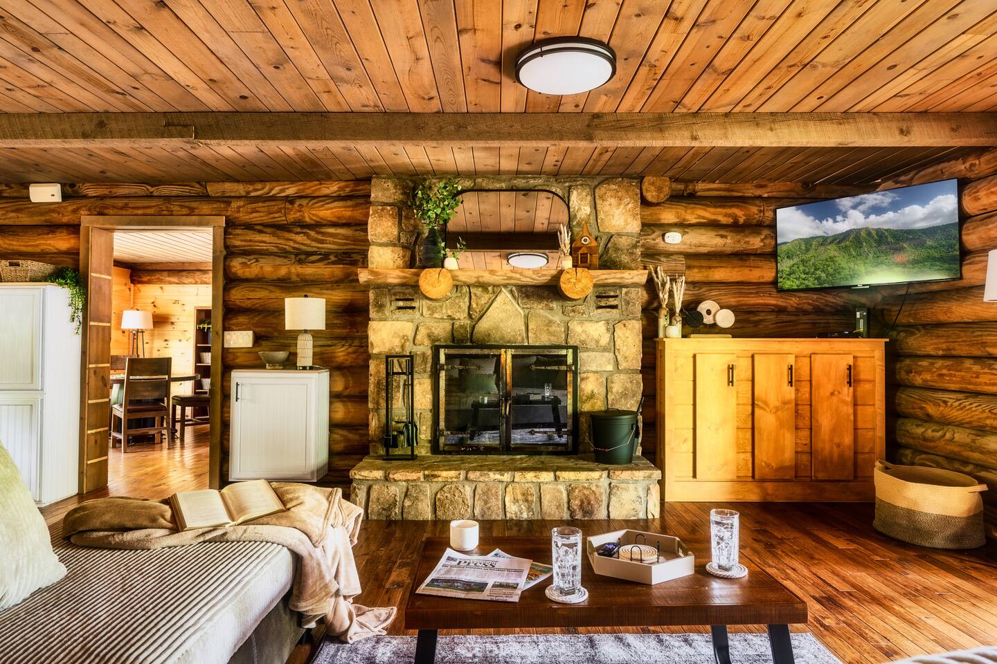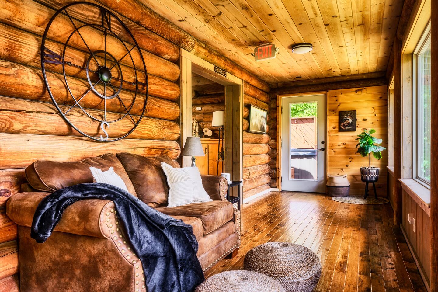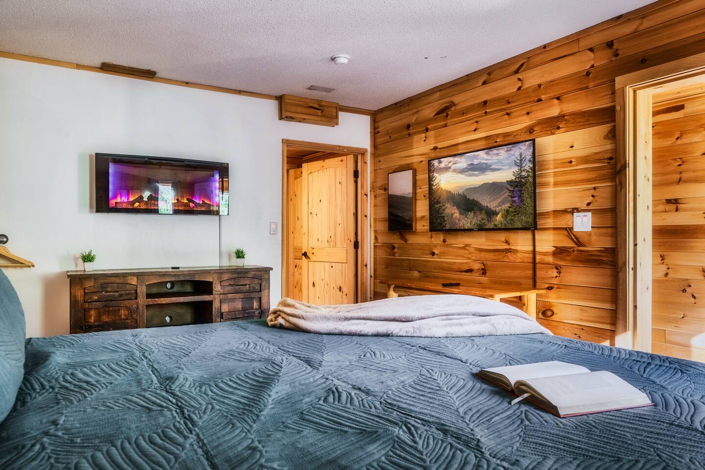 📌2.5 mi. to DT Gatlinburg 📌5 mi. to GSMNP HQ 📌9 mi. to Dollywood ♿️Wheelchair friendly entrance, main level bedrooms, bathrooms & appliances 🏡Secluded location 🪵True Log Cabin 🌟3168 SF ➡ Step-free entry & main level ➡ Sleeps 12 humans ➡ Driveway fits 4 cars ➡ Fast WiFi (500+ Mbps!) ➡ 2 King Suites, 3 King Beds, 3 full bathrooms ➡ Wood Burning Fireplace ➡ 5-person Hot Tub ➡ Theater Room ➡ Park Charcoal Grill ➡ Fully stocked kitchen ➡ 6 Smart TVs ➡ Arcades ➡ Board/card games ➡ Washer & Dryer